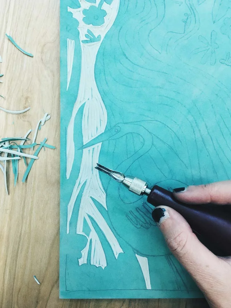 Workshop 1 - Foundational Block Printing. In this workshop, we will familiarize ourselves with the wonderful process of block printing using easy-to-carve soft linoleum! We’ll chat about materials and tools, positive and negative space, designing your print, transferring it to your linoleum block, carving, and finally, printing.